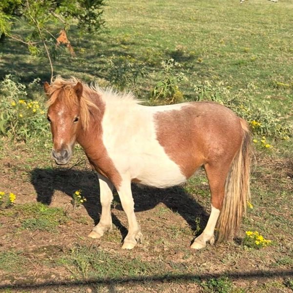 SOLD This little sorrel Pinto beauty is a sight to behold! She will be about 28-29" tall. Perfect for Halter, Driving or pasture buddy. Out of... ROYAL AND ECHO DOB: 7-4-23