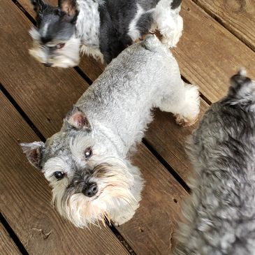 Along with the standard schnauzer build, and an easy going temperaments, we have left nothing to chance. Making both breeds very versatile to any lifestyle. We live in home with our dogs and puppies, avoiding outside kennels. Striving to ensure the health, happiness and total well-being of our own dogs, and the puppies we share with you.
